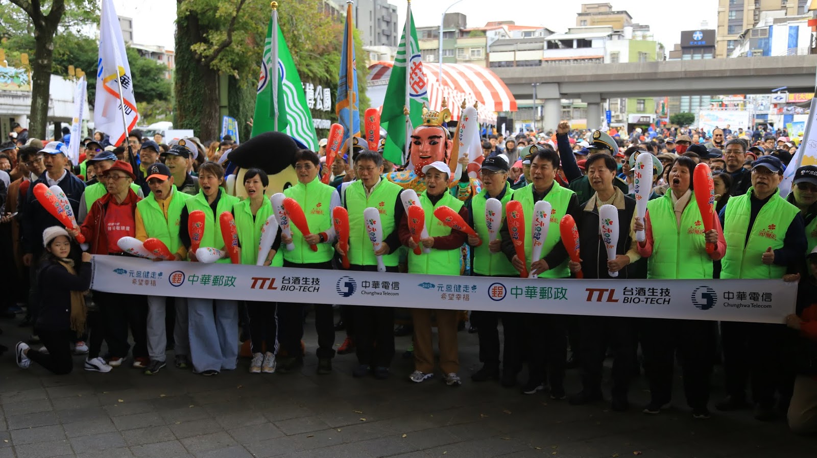 (台北訊) "元旦萬步走,新年好采頭" 已經連續第16年舉辦的元旦健走,在活動發起人紀政、代言人王金平前院長、台北市大家長柯文哲市長的熱情帶動下,數千民眾在台北圓山花博廣場,用健康萬步走迎接2019年第一天。第四度出席此活動的柯文哲市長,在會場與民眾開心互動,現場充滿愉悅氣氛與歡樂笑聲。活動代言人前立法院長王金平更當場加碼5份2萬元紅包,讓現場是high翻天。